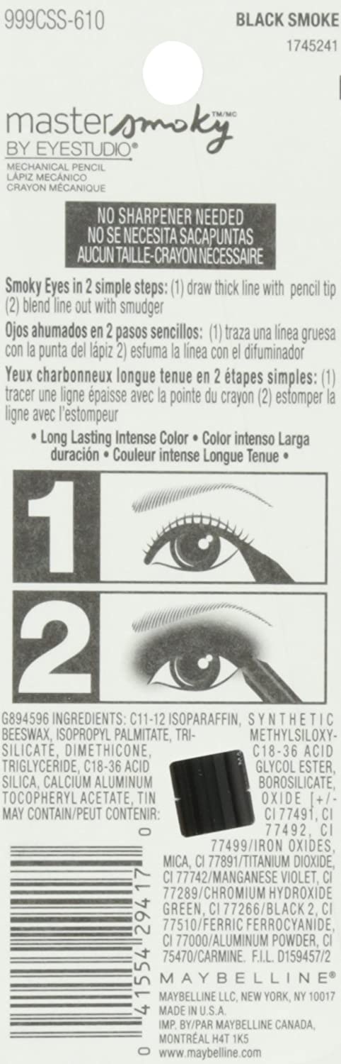 Maybelline Eyeliner Master Smoky Black Smoke, Delivers control and definition from natural lines to your boldest looks. The highly pigmented formula will keep your eyeliner look last all day. A high-impact color that glides on and blends easily for long-lasting. Glides on smoothly to create the perfect eye looks.