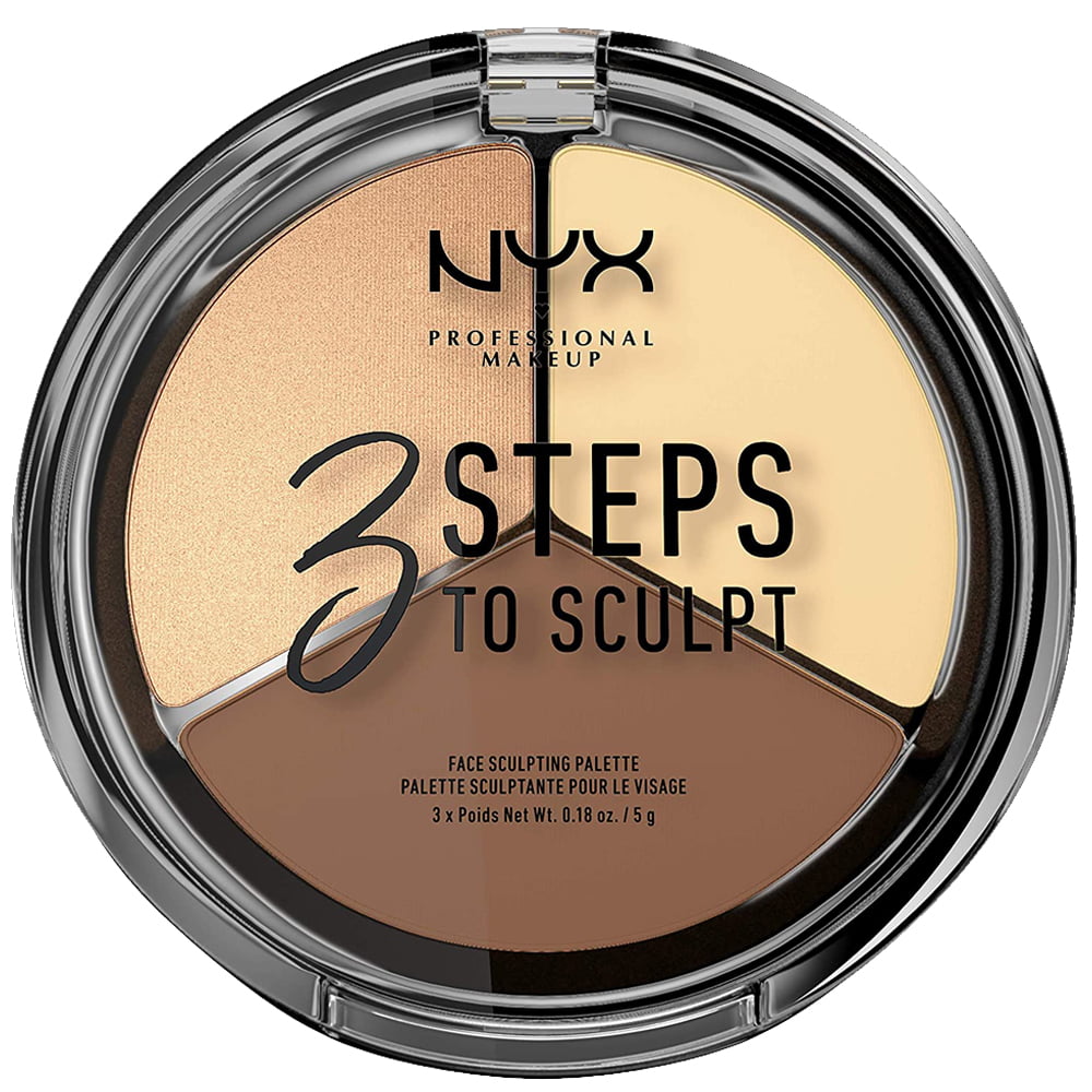 NYX Sculpting Palette Light Steps To Sculpt Face, Available in four plush color combinations, each palette includes three specially selected shades for contouring, highlighting and illuminating with ease. These creamy pressed powders are blend seamlessly for a natural, sculpted look.
