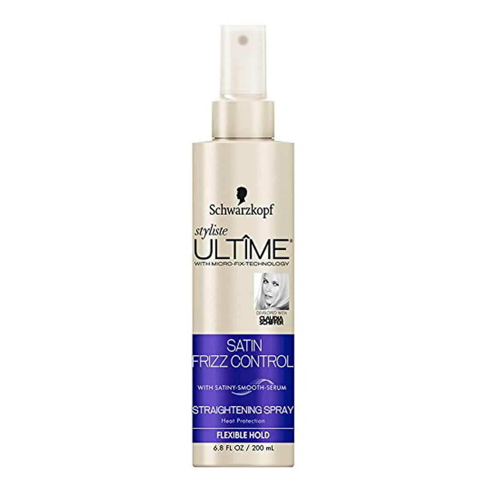 Schwarzkopf Hair Spray Ultime Straightening Spray Satin Frizz Control, The special formula with satin smooth serum promotes sleek hair and reduces frizz up to 100% while also protecting against heat damage, for a 4 day straight effect.