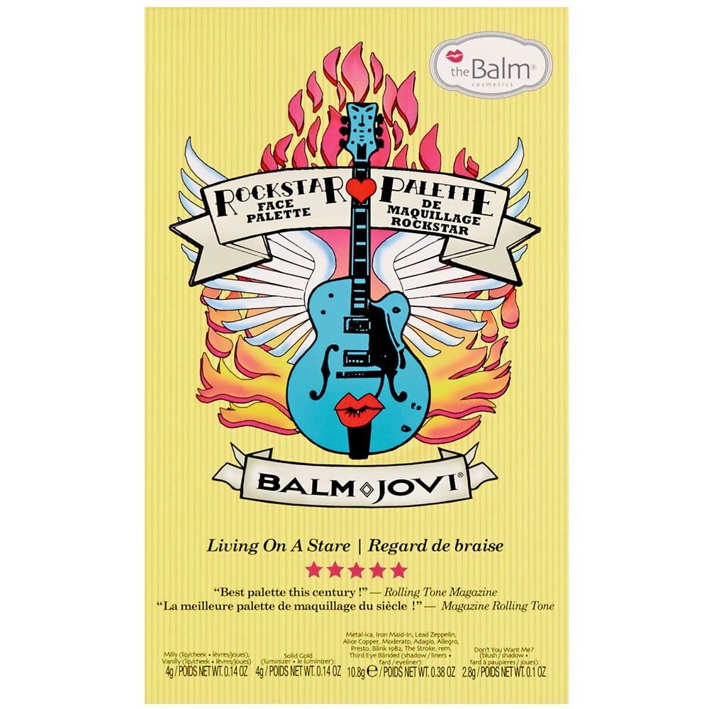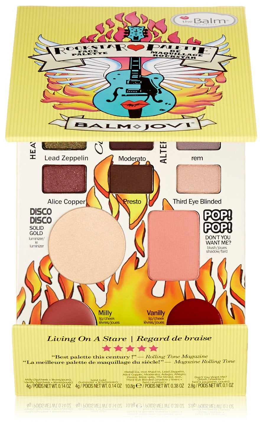 The Balm Eyeshadow Jovi Rockstar Plalette, This palette has everything you need to take center stage! It features 12 shadows that are sure to top the charts (and rock). All of these shadows can be used wet or dry – so “live and wet/dry”…it’s up to you! The headlining highlighter and blush are sure to set the stage. Sync up your look with “Milly” and “Vanilly”, the two included lip and cheek creams. Balm Jovi is compact and portable, yet it has everything you need to take on tour!